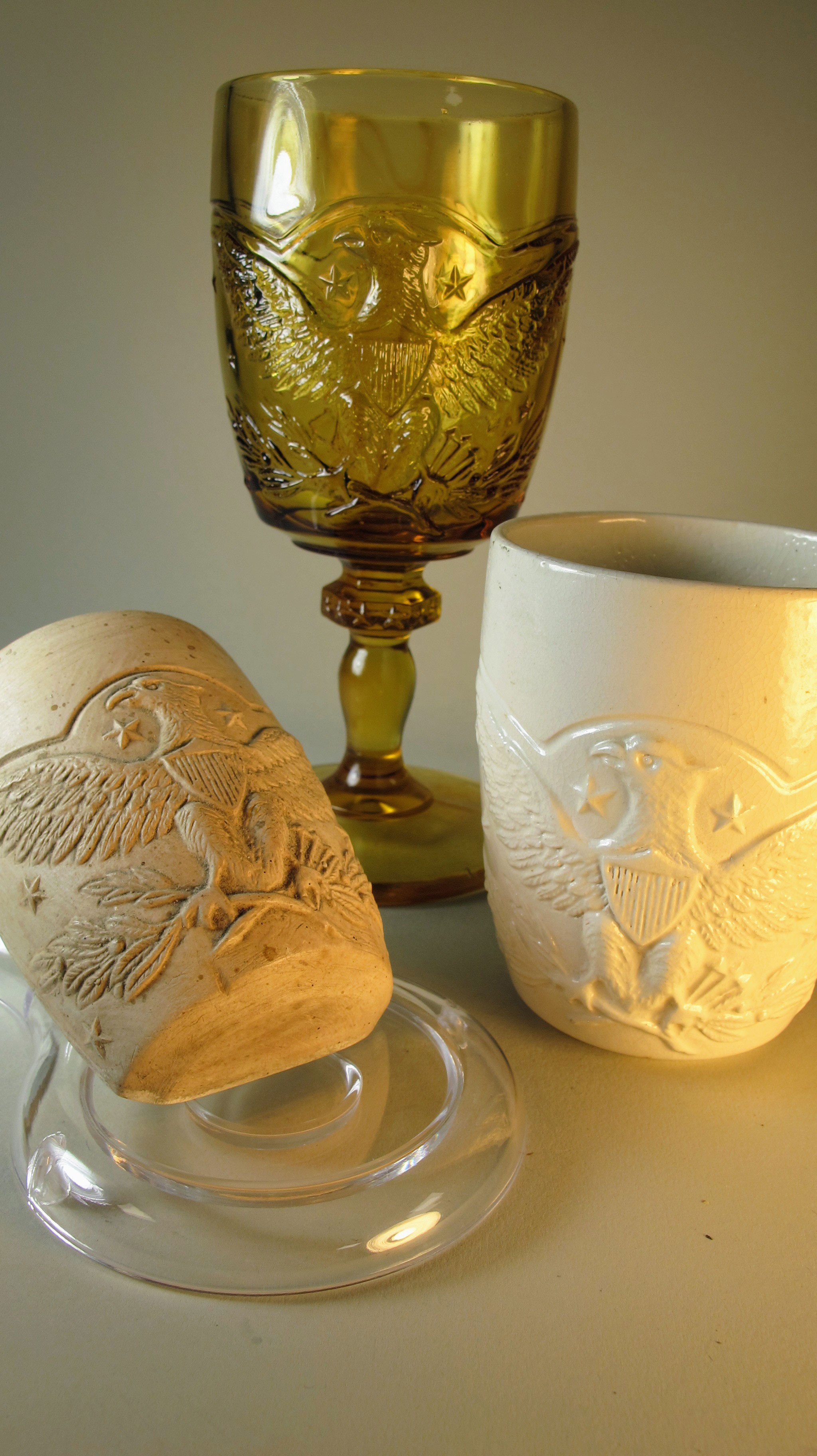 Two plaster sides and a whole model for the Federal Eagle found in Walter Przybylek’s studio demonstrate his work shaping and refining this motif specifically into the shape of a water or wine goblet.